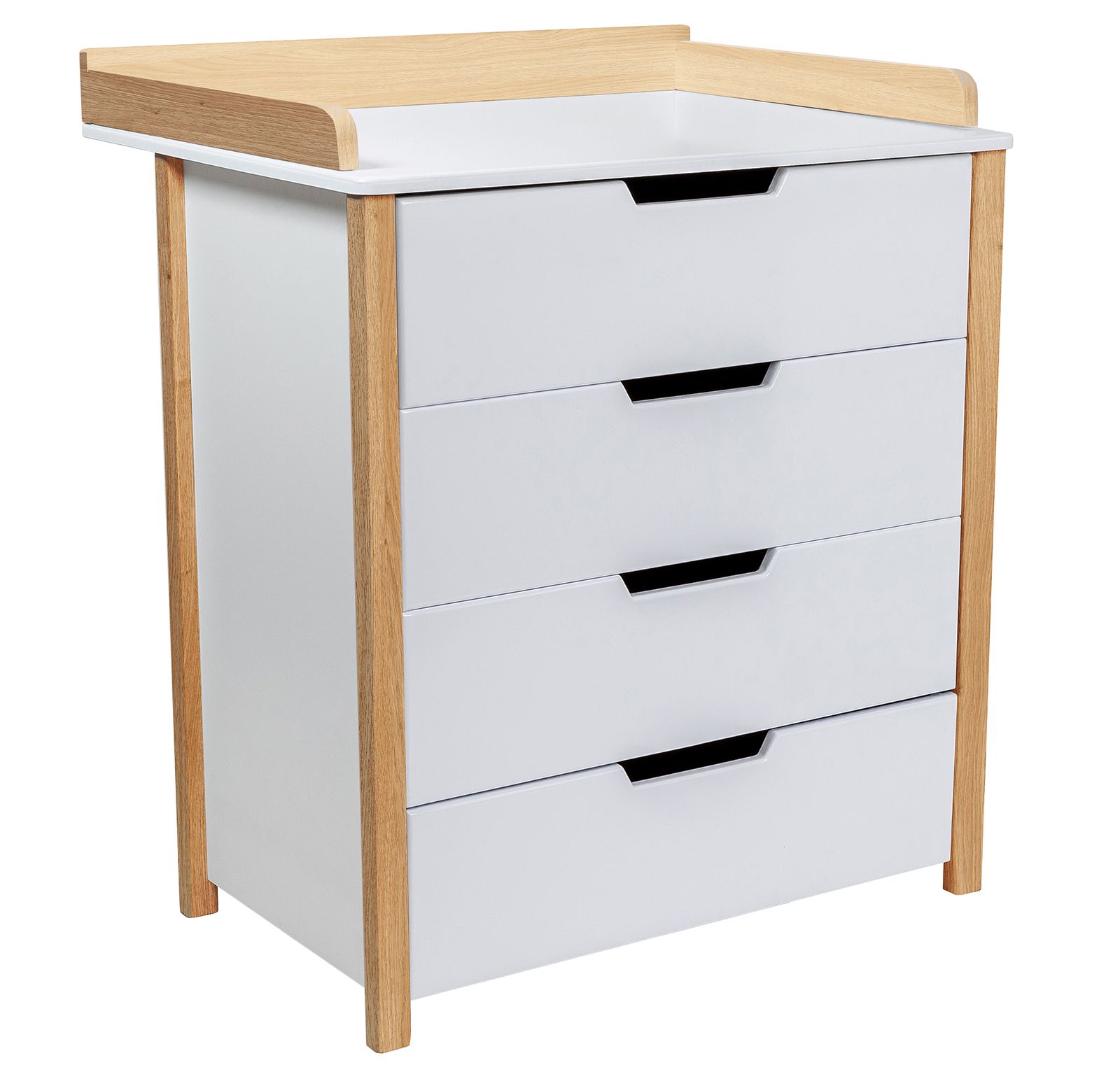 Комод оснащён дополнительными элементами безопасности: регулируемые ограничители высоты обеспечивают надёжное закрепление поверхности для пеленания, предотвращают случайное падение ребёнка и делают использование мебели удобным даже для родителей маленького роста. Благодаря встроенным бортикам обеспечивается дополнительная защита от падений и травмирования младенца.